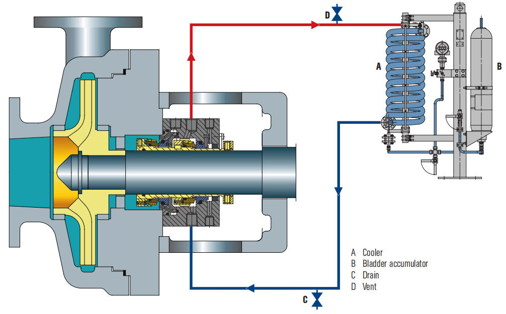 سرعت جریان سیال شستشو باید برای حذف گرما از محفظه آب بندی مکانیکی کافی باشد.