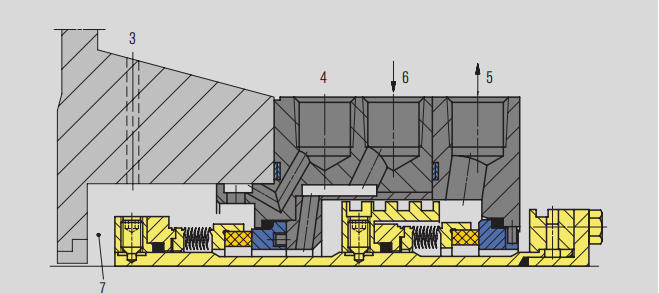 از دهانه های کنترل جریان برای محدود کردن جریان سیال شستشو به مهر و موم مکانیکی استفاده می کند.